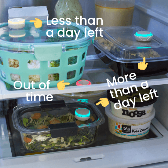 With a time-based system like LightTags, you can Tag foods for weekly meal prep so that as the days pass, new ones turn yellow each day.